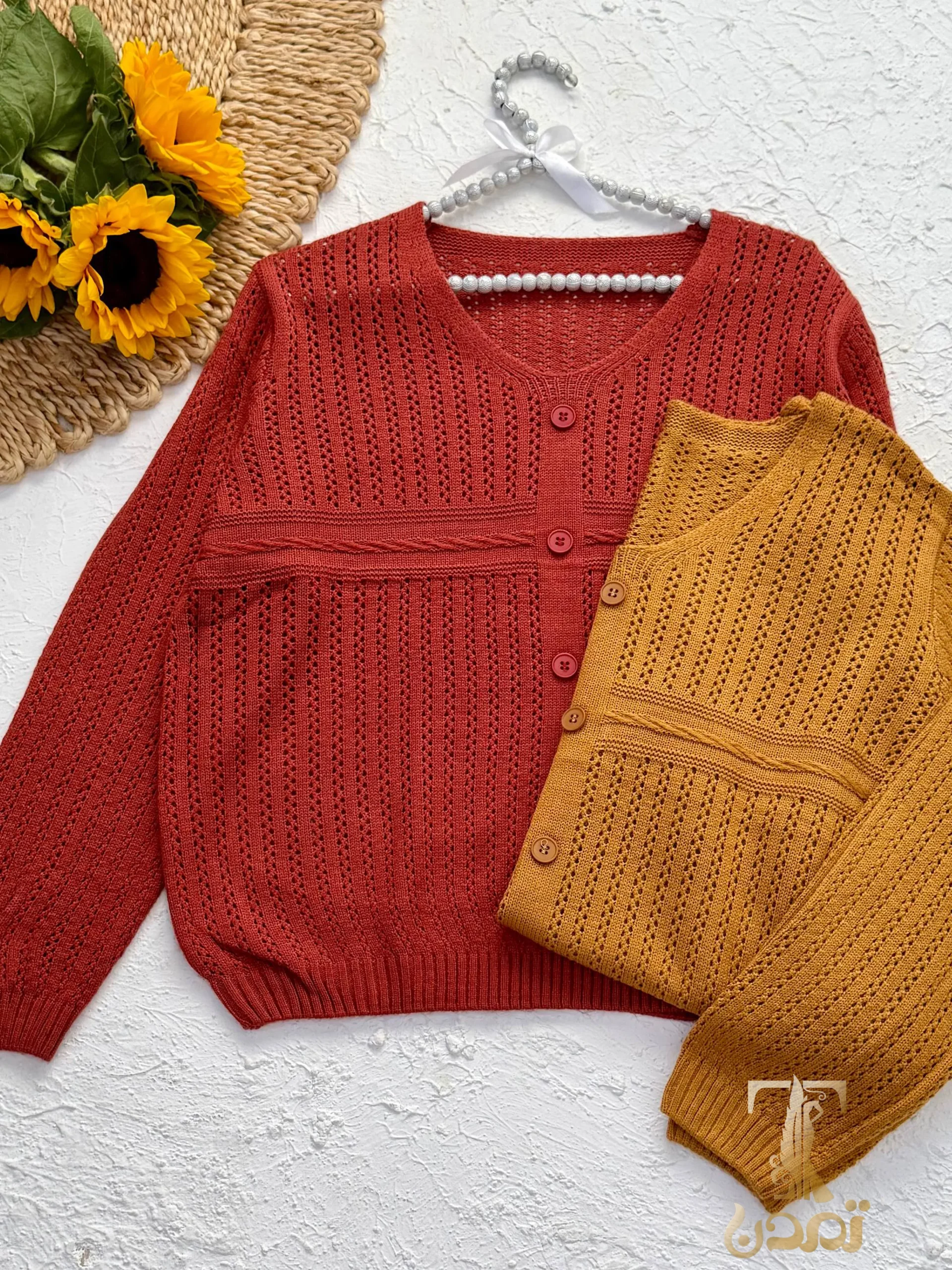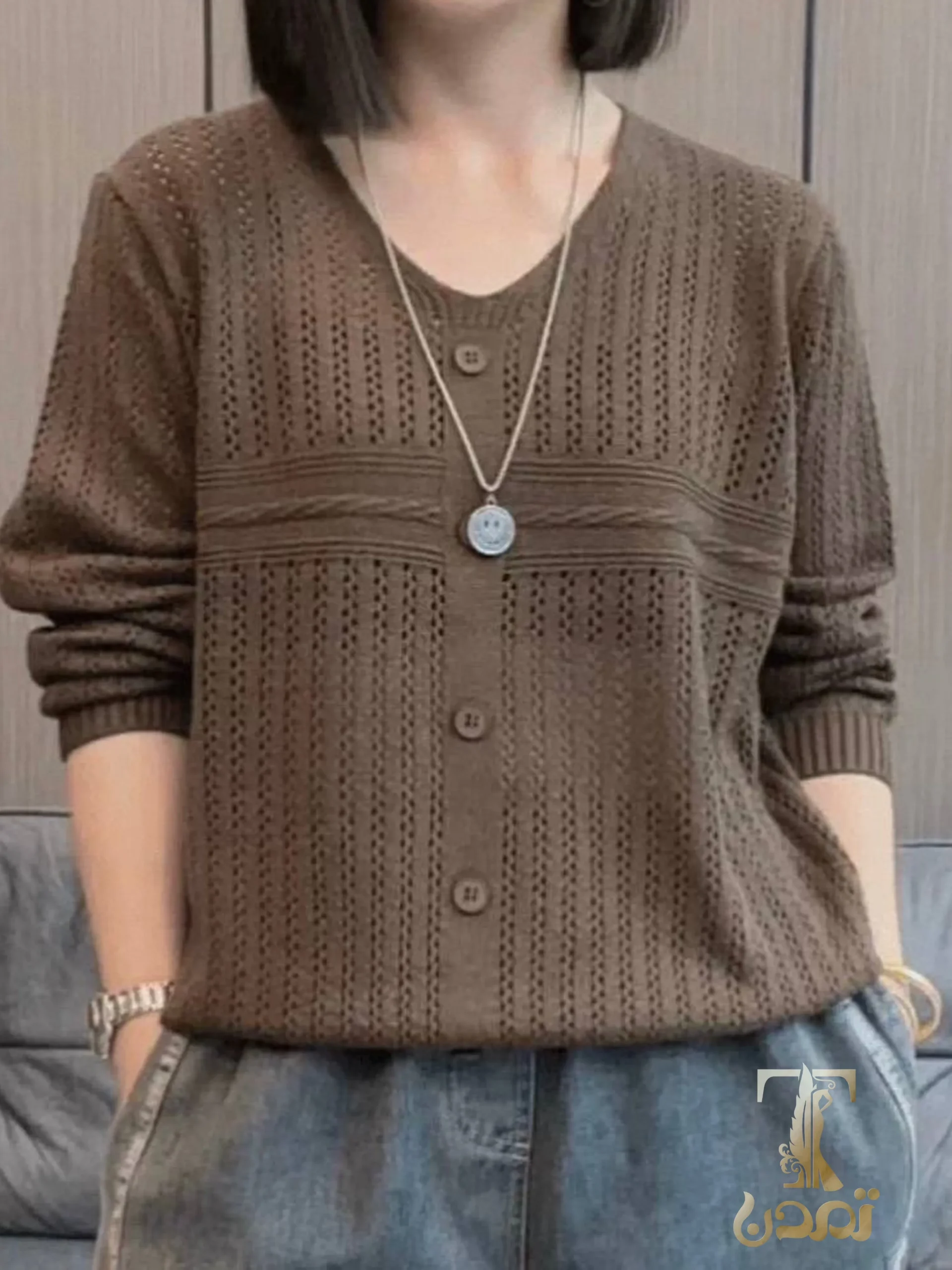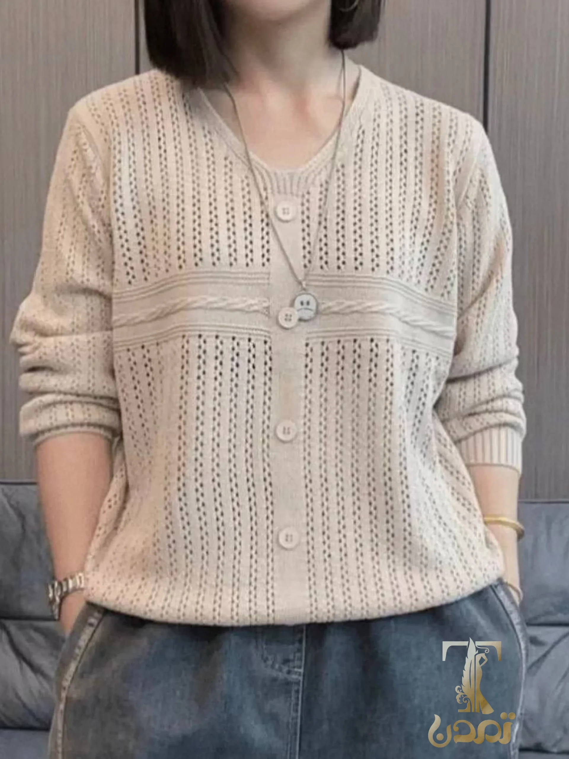 برای محل کار یا موقعیت نیمهرسمی: این بافت را با شلوار پارچهای در همان تون رنگی، کفش تخت یا پاشنه متوسط و یک ژاکت سبک ترکیب کنید. این مدل قوارۀدار بهخوبی در زیر کت یا ژاکتهای ست و زیبا بنظ میاد.